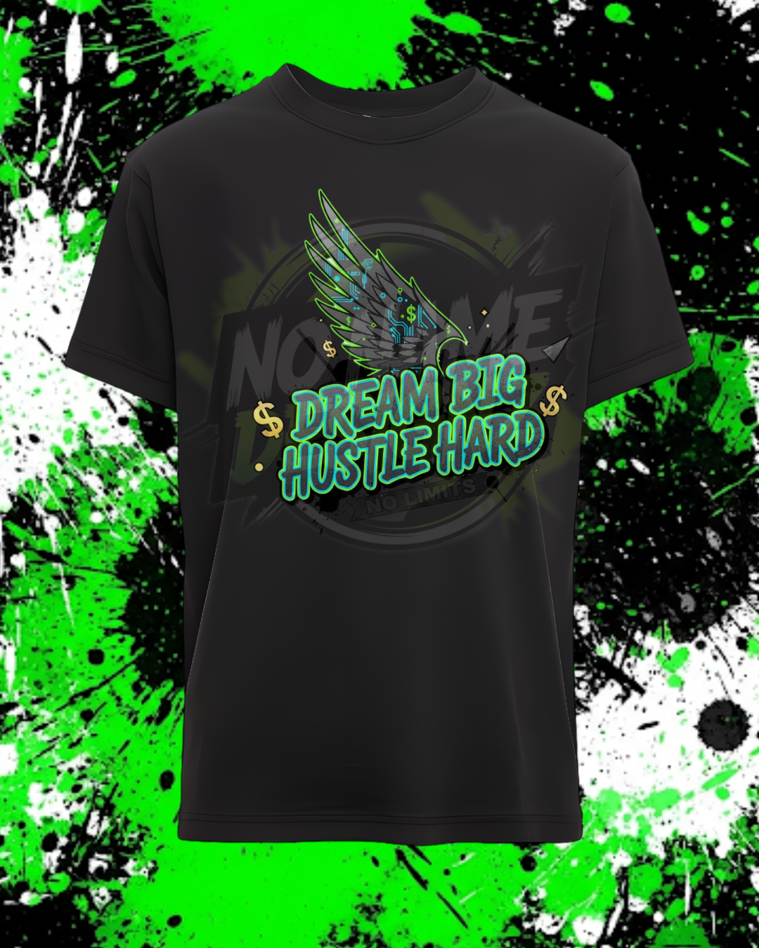This tee is your constant reminder: NO LIMITS. The 'Dream Big Hustle Hard' design captures the spirit of relentless ambition and soaring success. It’s for the entrepreneurs, the dreamers, and the workers who know nothing comes easy.